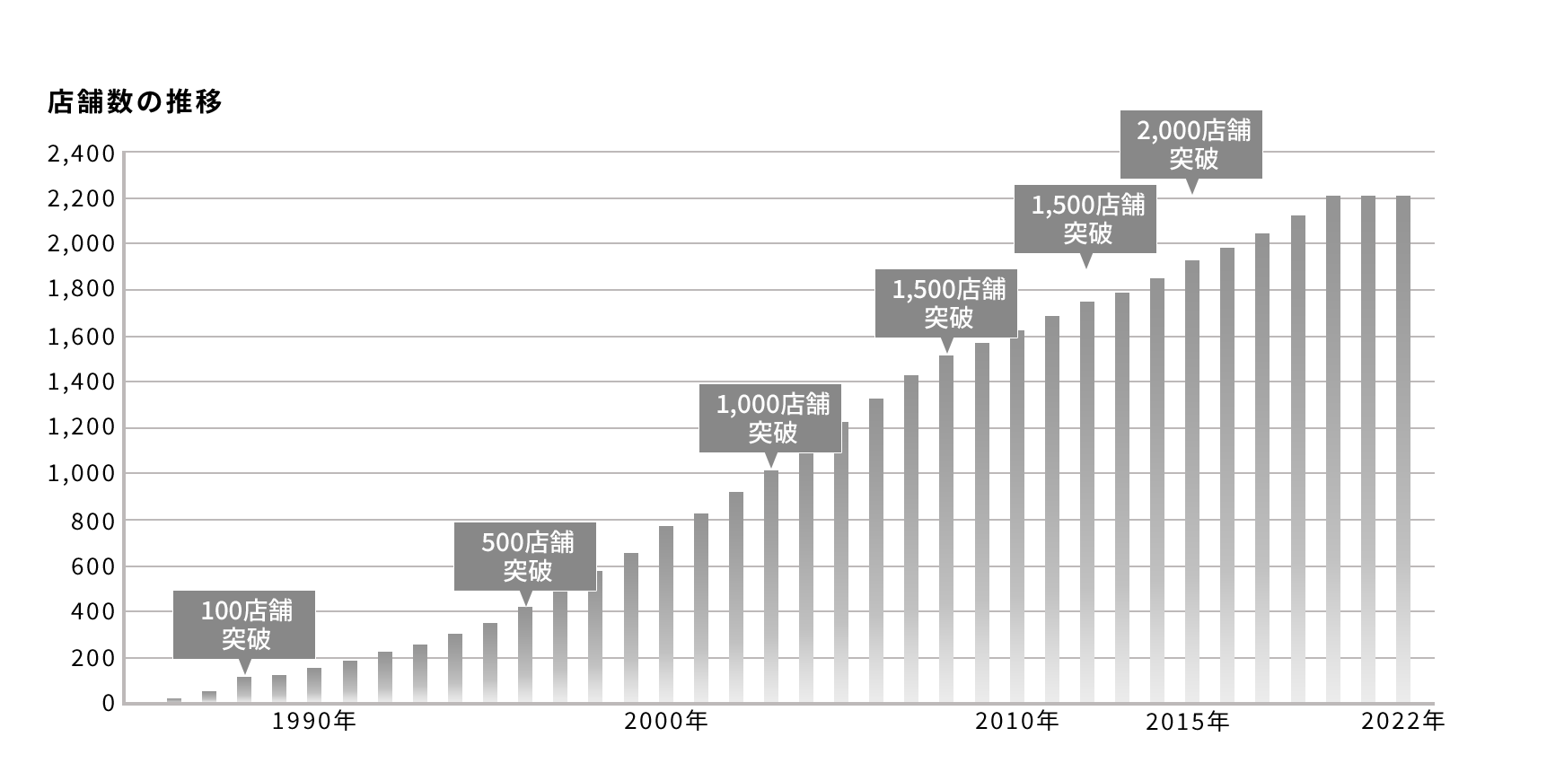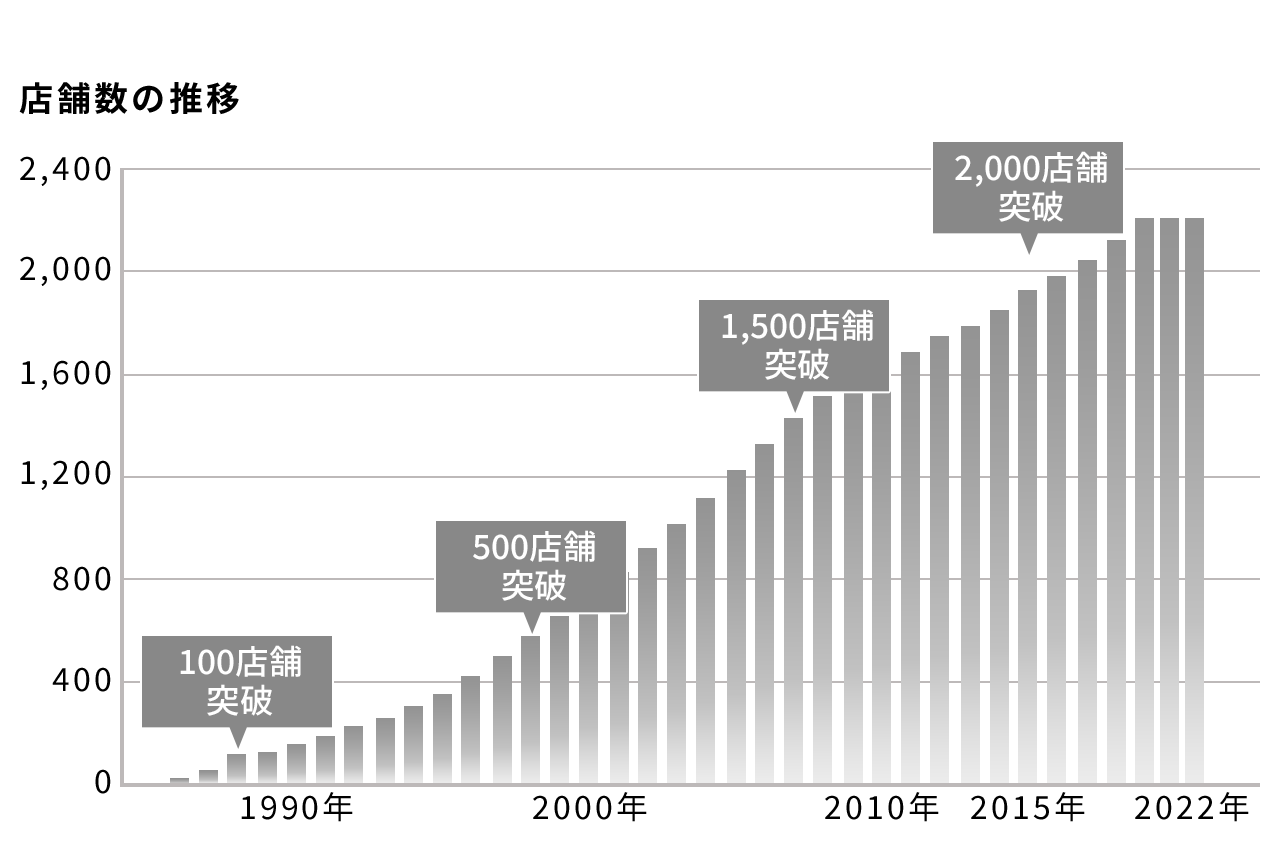 独自の理論「4S」を愚直に、誠実に、徹底してきた結果、 店舗数2,200店舗以上、年間来店客数約2億人へと成長した今、この安定基盤を活かし、ネット時代の新たな最適解を導き出す。